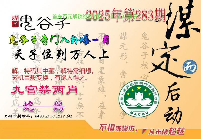 283期澳彩鬼谷子【天子位列万人上】开鸡45中 |